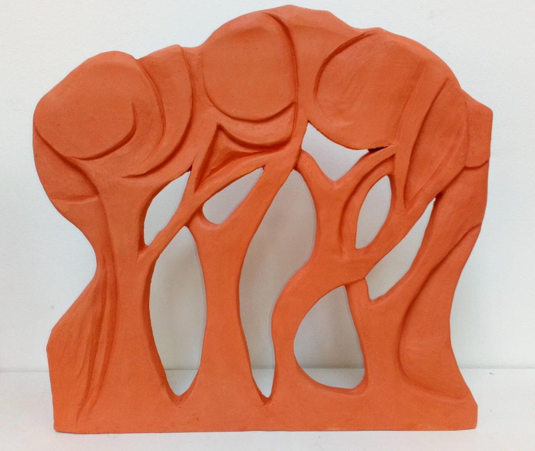 The Trees the Trees - red terracotta relief with apertures; 29cm wide, 28cm high.