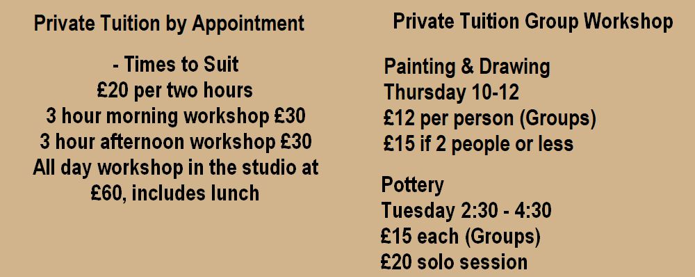 I run Art Workshops here. Students can learn all the different drawing & painting techniques, work on clay hand building or carve wood & stone.