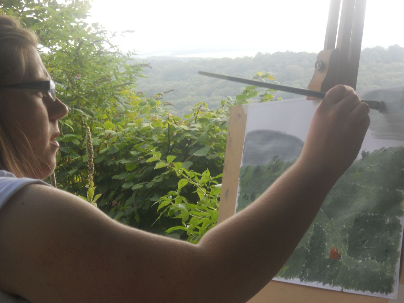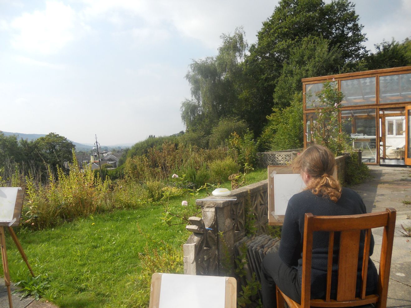 A student from the group workshop painting the view from the garden.